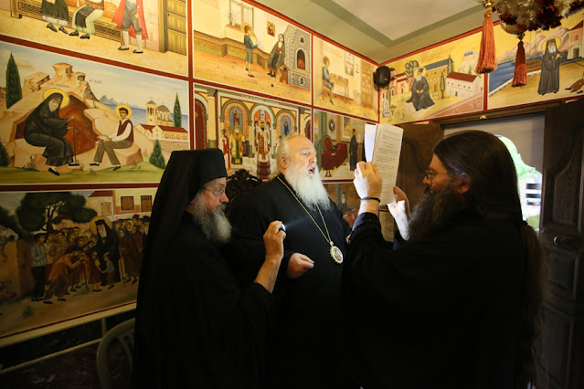 Σήμερα τό πρωί ανήμερα τής εορτής, ετελέσθη ο Ορθρος καί η Αρχιερατική Θεία Λειτουργία, προεξάρχοντος τού Σεβασμιωτάτου Πατρός καί καθηγουμένου, Μητροπολίτου Ταλαντίου καί Λοκρίδος κ.κ. Νεκταρίου, Ιερέων καί Διακόνων τής Μονής μας.