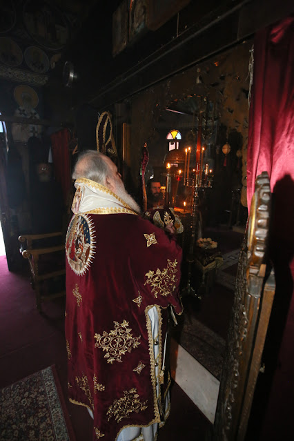 Κατά τήν διάρκεια τής ακολουθίας, στην 9η ώρα, ετέθησαν σε προσκύνηση τεμάχια από τα Τίμια Δώρα των Μάγων, που φυλάσσονται στην Ιερά Μονή μας.